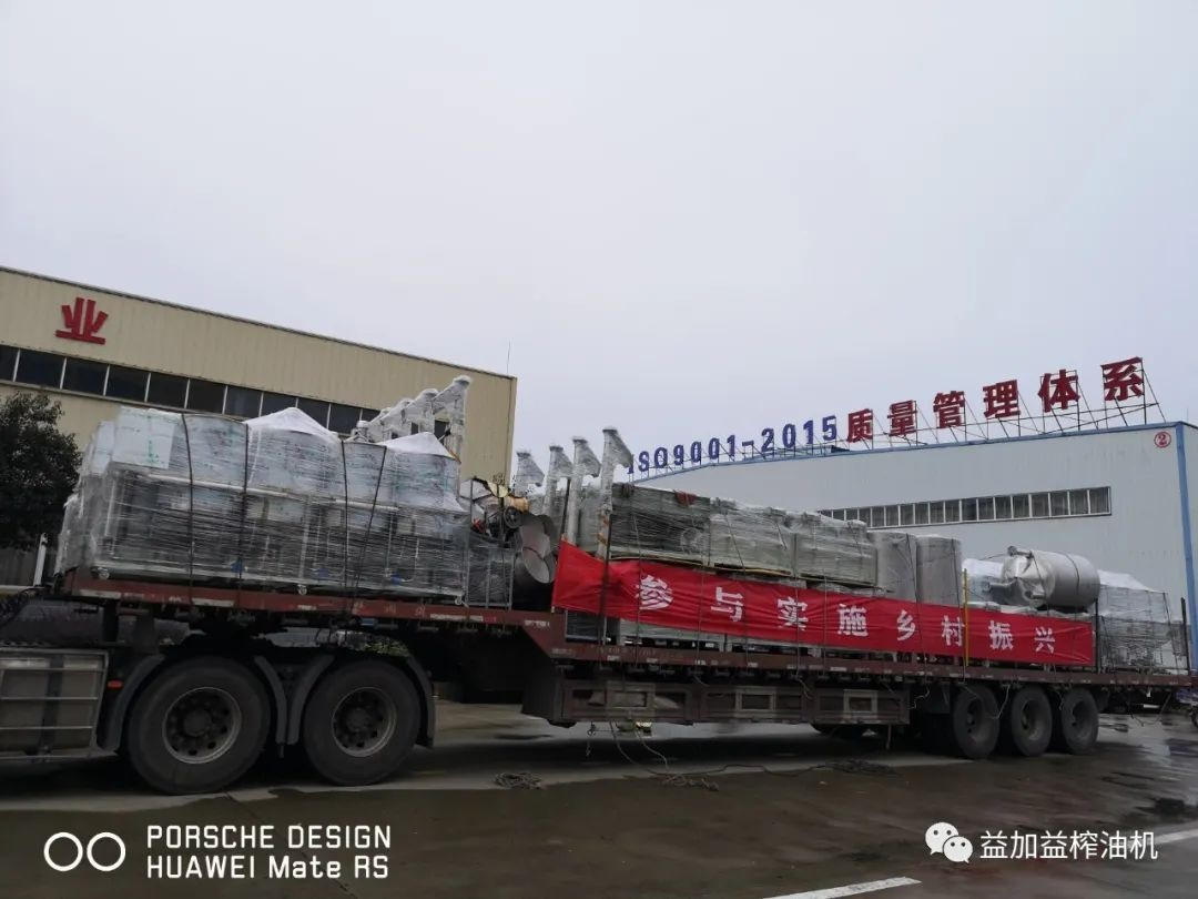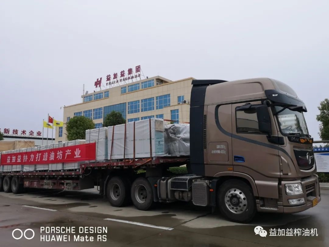 國慶節(jié)后開工第一天,訂單忙、生產(chǎn)忙、發(fā)貨忙......益加益產(chǎn)業(yè)園區(qū)內(nèi)一派繁忙景象。在發(fā)貨現(xiàn)場,運(yùn)輸物流車輛忙碌不停,一輛接一輛緩緩駛出,一臺(tái)臺(tái)“益加益制造”的高品質(zhì)榨油機(jī),發(fā)往廣西自治區(qū)百色市田林縣各個(gè)山茶油專業(yè)合作社。